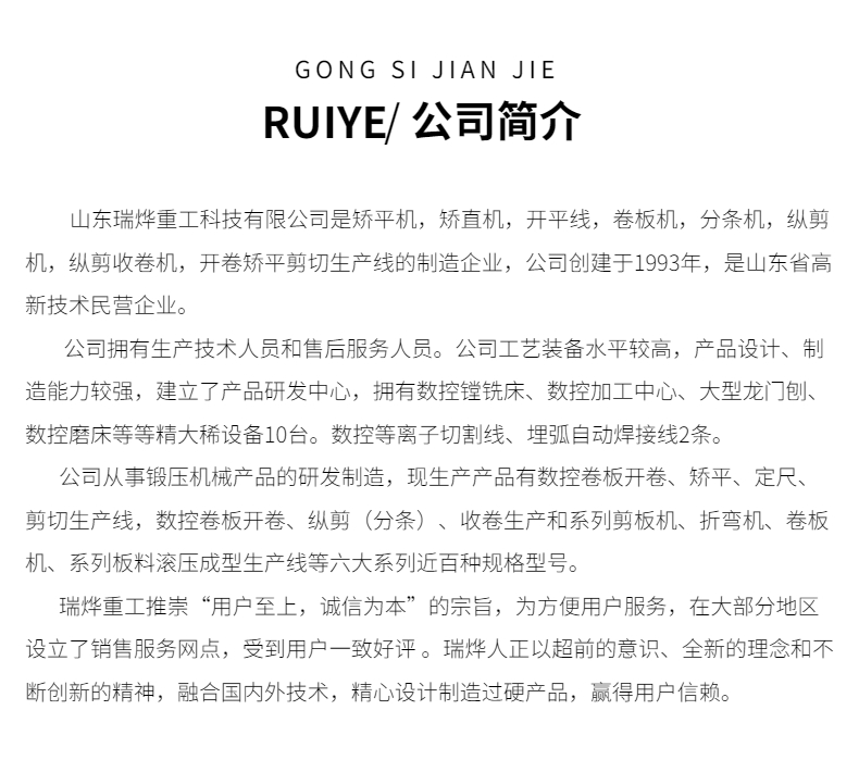 山東瑞燁重工科技有限公司主營校平機、開平機、縱剪機等產品。