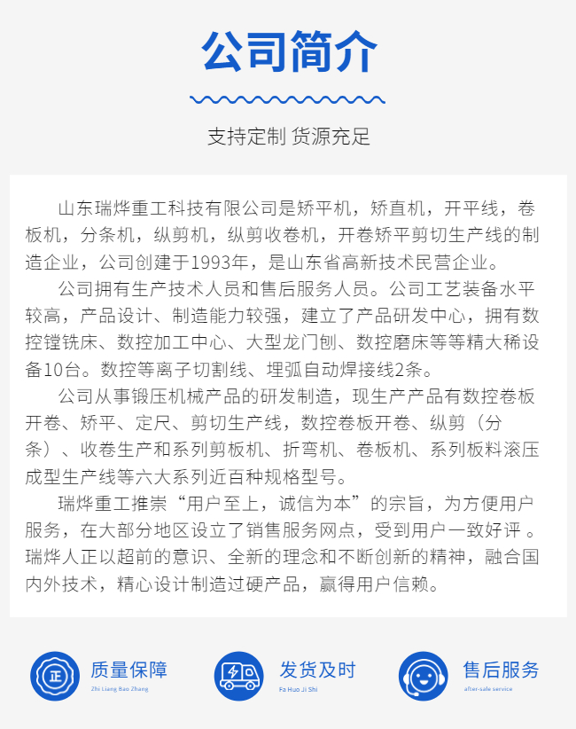 山東瑞燁重工科技有限公司主營(yíng)校平機(jī)、開(kāi)平機(jī)、縱剪機(jī)等產(chǎn)品。